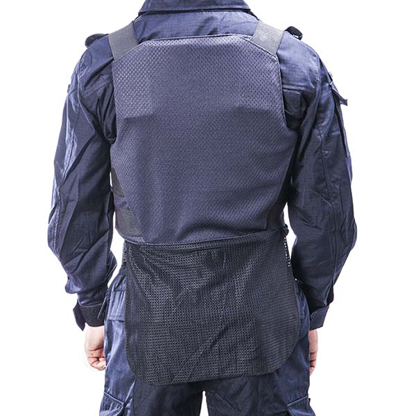 • 內(nèi)穿式防彈衣由外(wài)套、防護層及防護層保護套組成。外(wài)套由滌棉襯網眼布制(zhì)成;防護層由23層PEUD(迪尼瑪無緯布,單層面密度:190g/m2、∏5.0mmEVA制(zhì)成。防彈衣下(xià)部有(yǒu)前後束腰片。